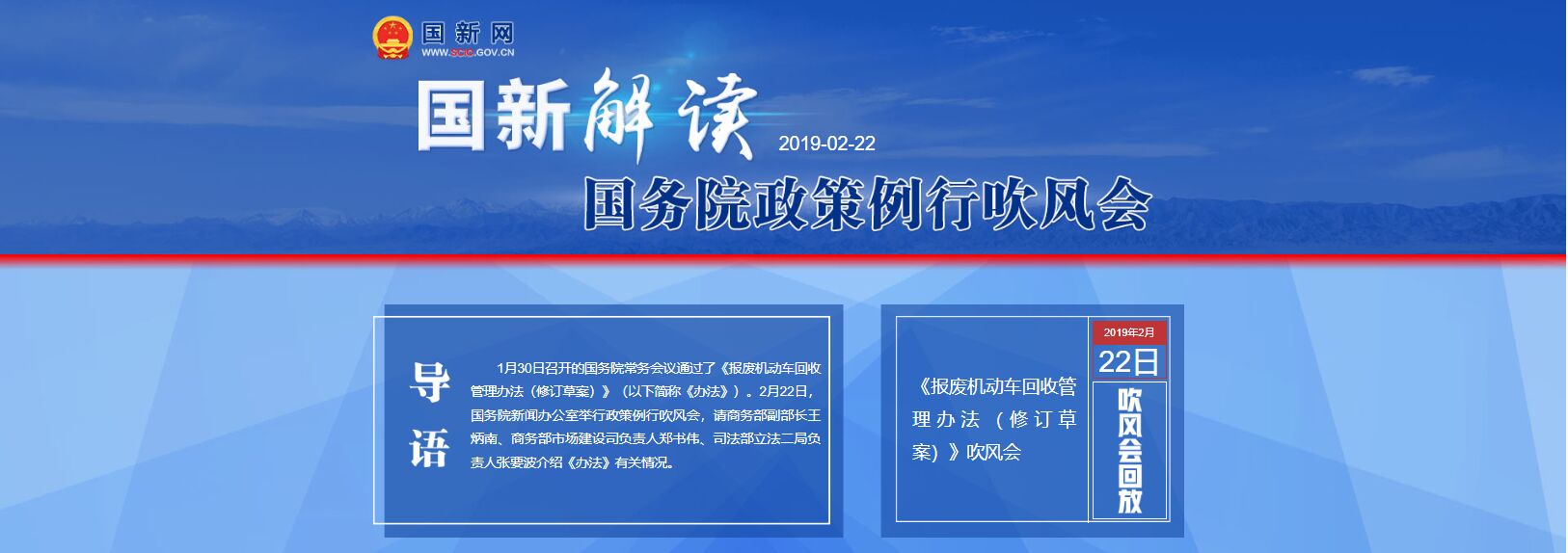 党中央、国务院高度重视报废机动车回收管理工作,习近平总书记指出,要坚持全民共治、源头防治,持续实施大气污染防治行动,继续淘汰黄标车和老旧车,打赢蓝天保卫战。李克强总理强调,要加快出台实施报废汽车回收管理办法,推动报废汽车回收拆解行业规范、健康、有序发展。